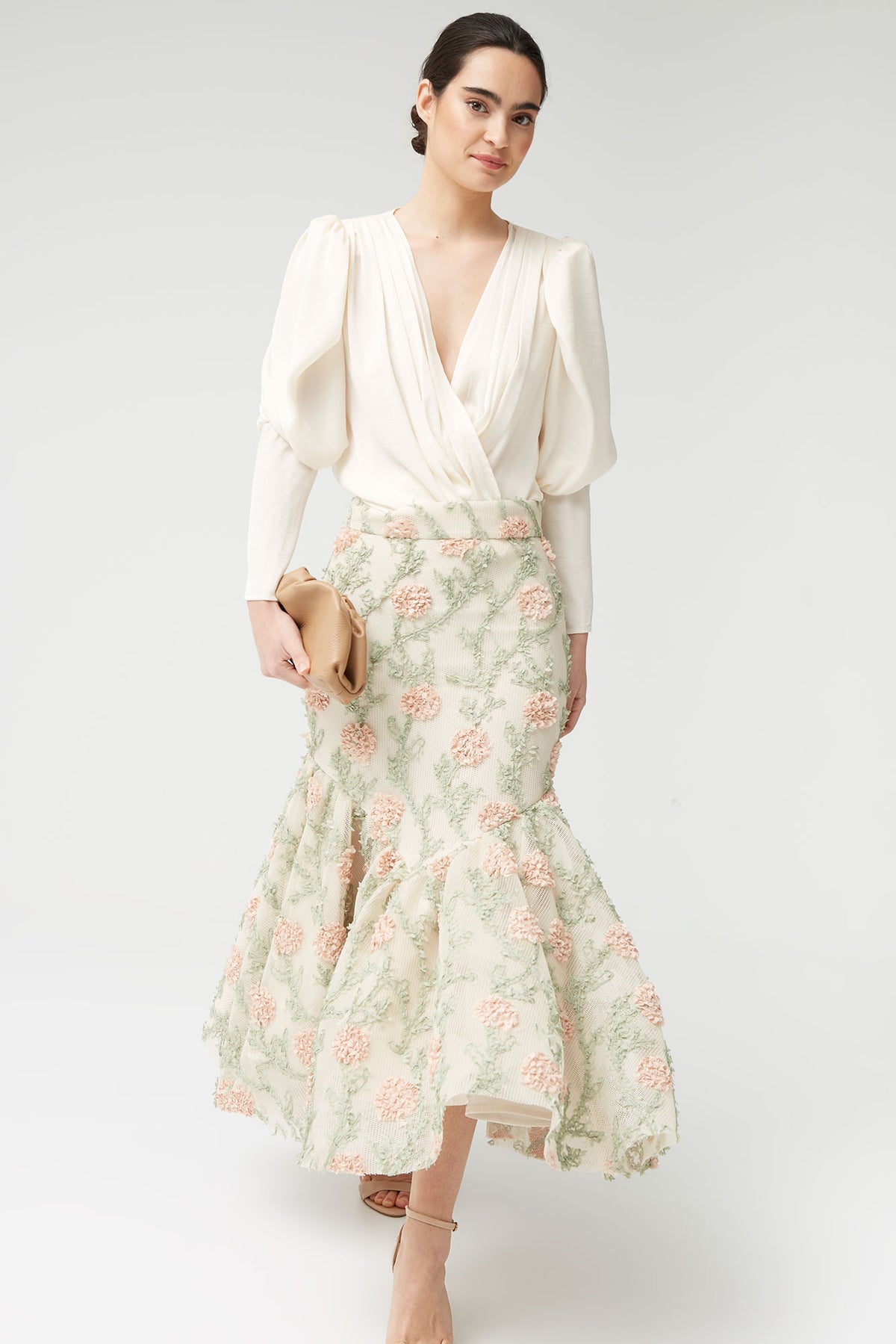 La Falda Odise es una prenda romántica y sofisticada que aporta movimiento y delicadeza a cualquier look. Confeccionada en un tejido ligero con bordado floral, destaca por su diseño cuidado y su caída fluida, perfecta para estilismos femeninos y especiales.