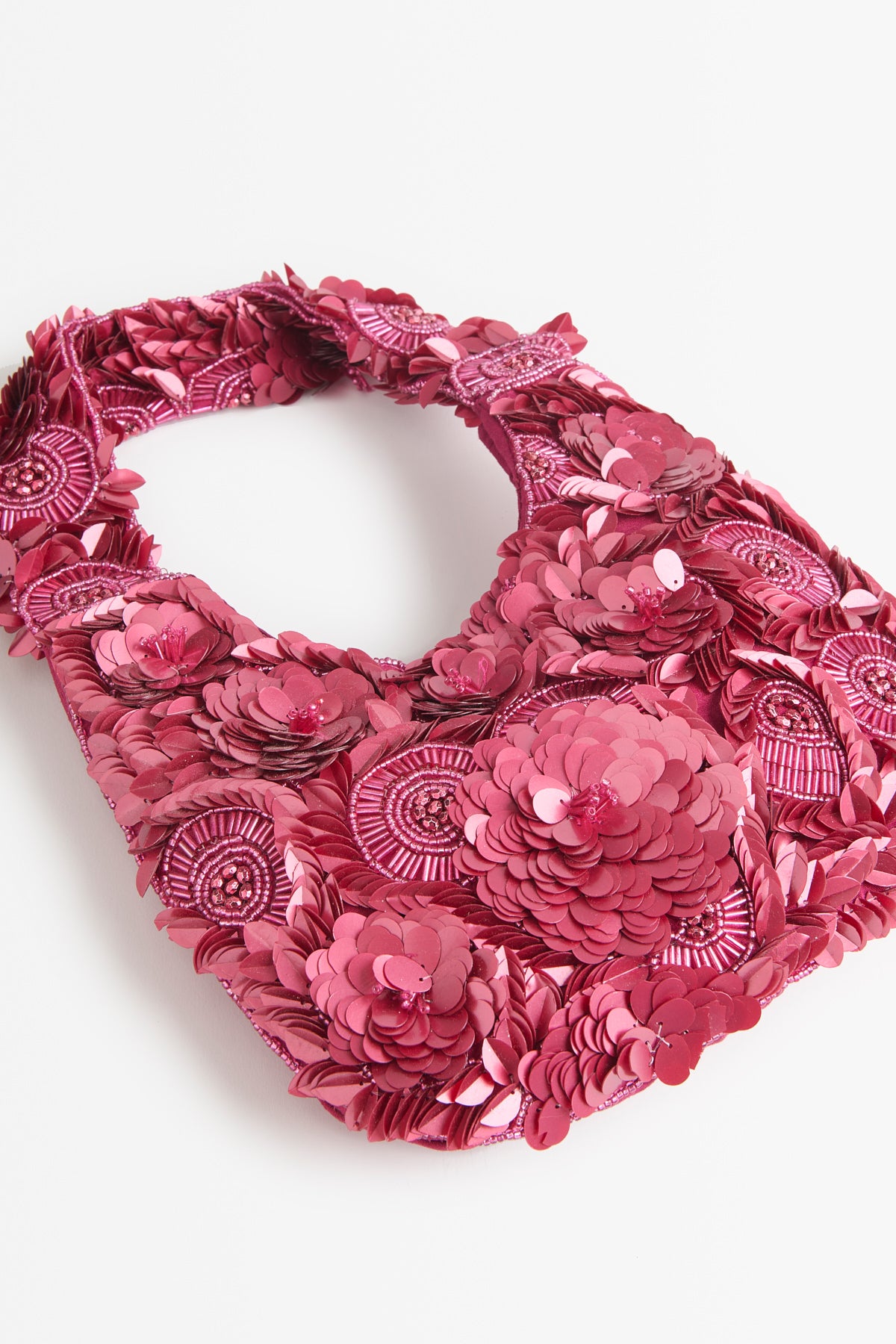 Un sac d'invitée avec des fleurs en relief conçu pour celles qui recherchent un accessoire spécial qui apporte du caractère et du style à leurs tenues de fête.