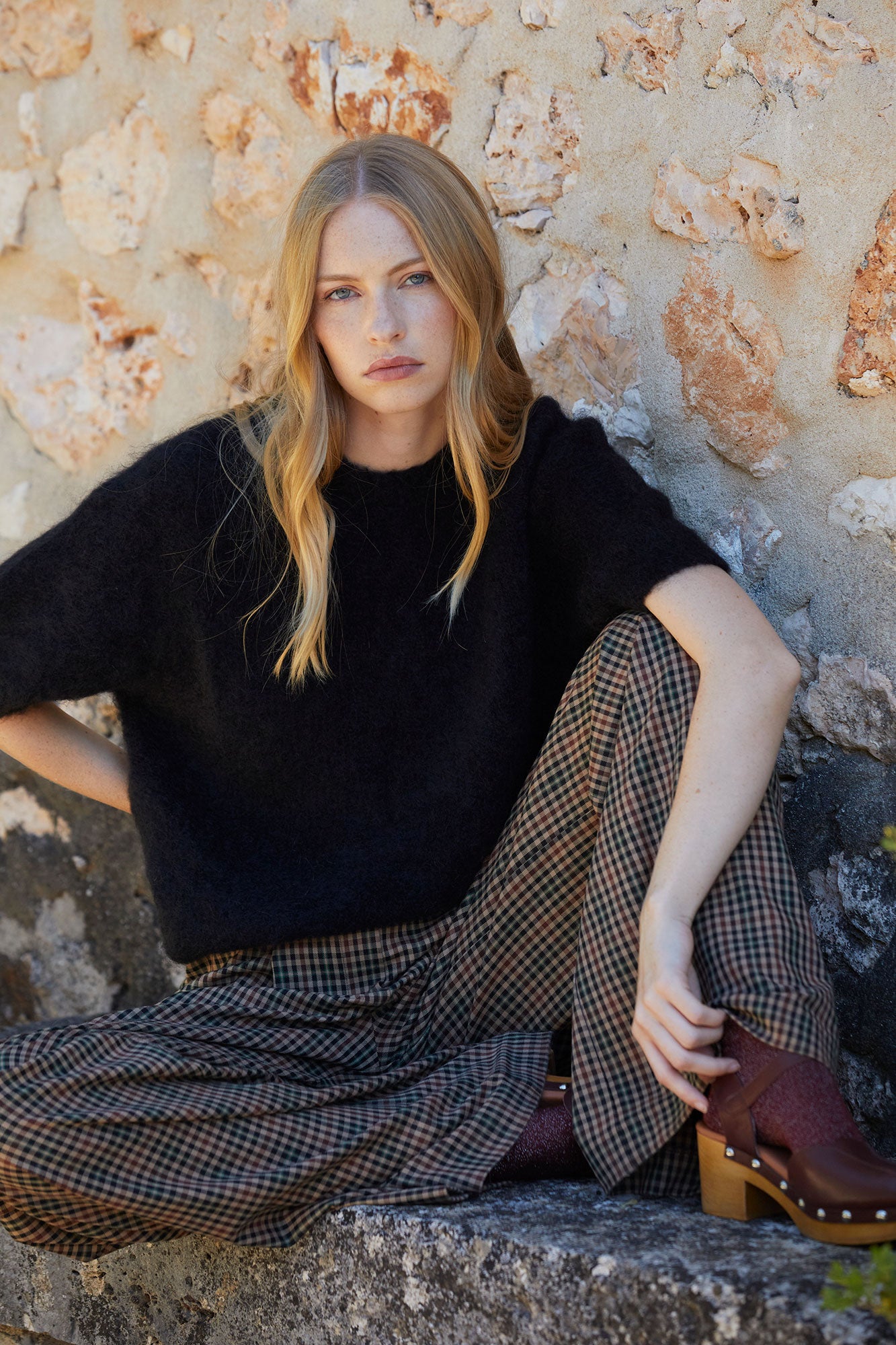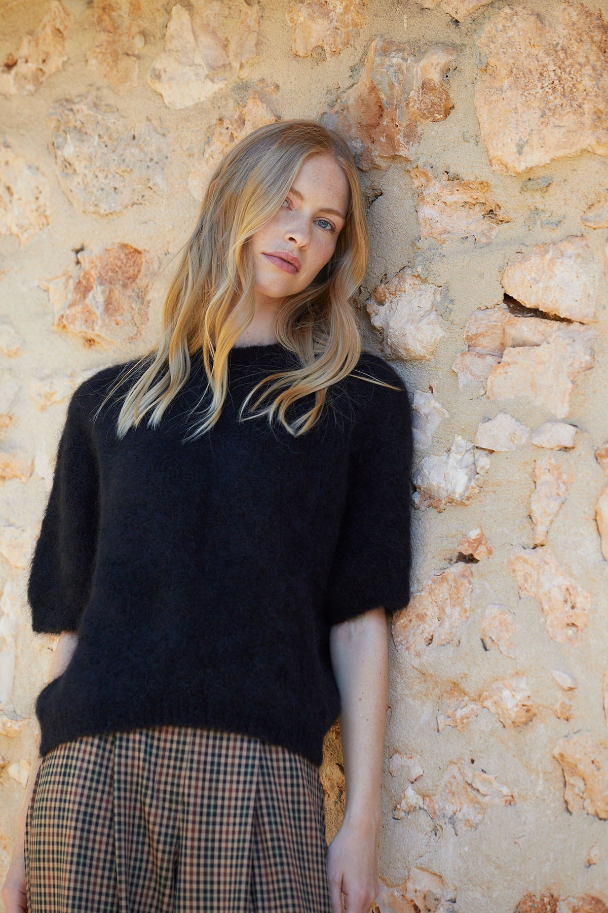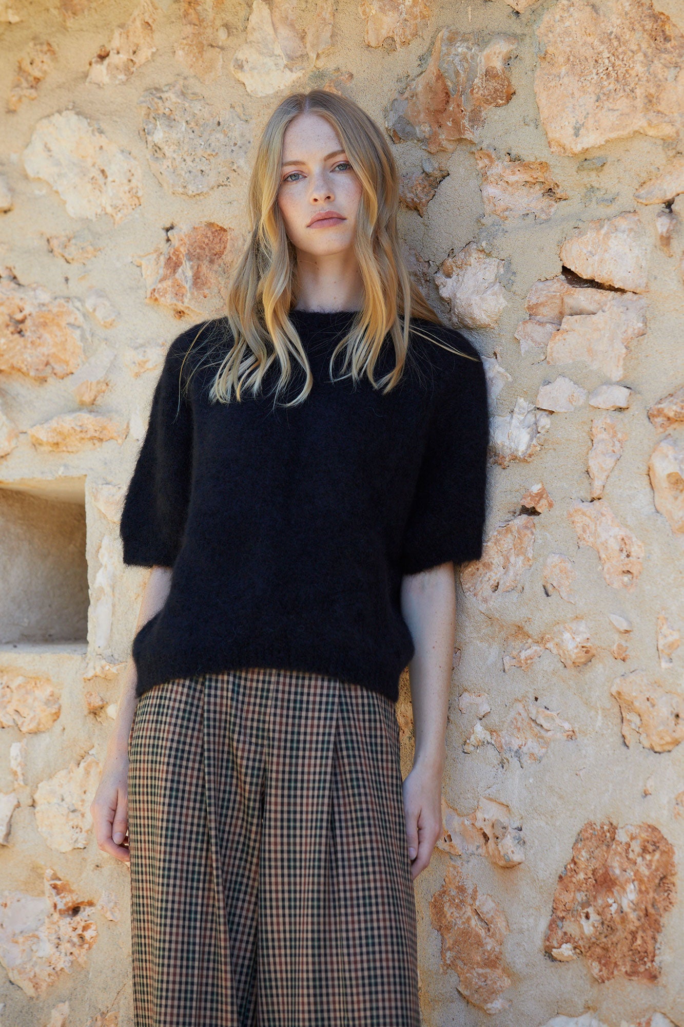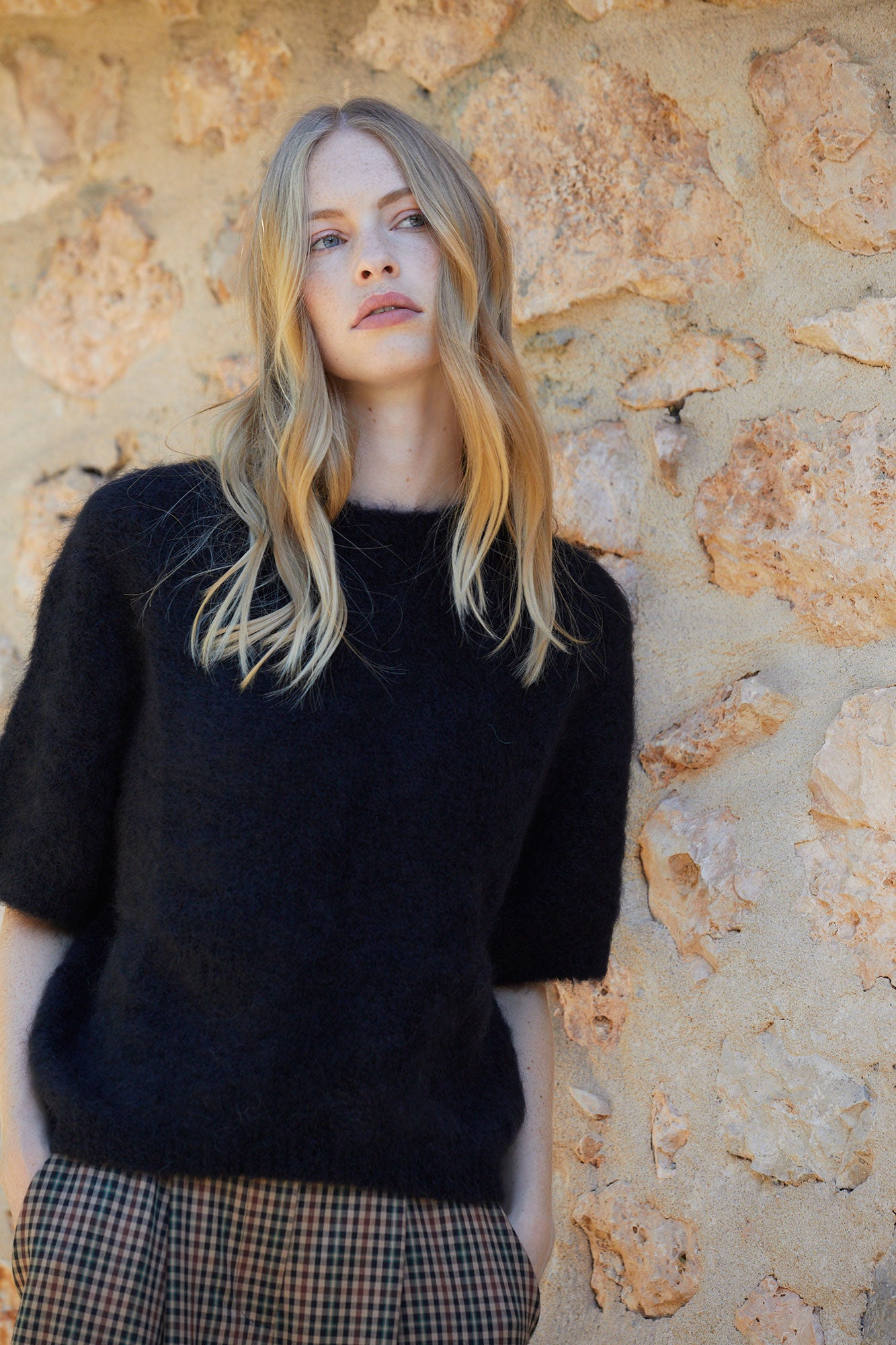 El jersey Sira con manga corta es la prenda ideal para combinar elegancia y confort en tus looks de entretiempo. Su textura suave y ligera envuelve el cuerpo con una caída natural, mientras que su tejido esponjoso y cálido aporta un toque cozy y sofisticado.