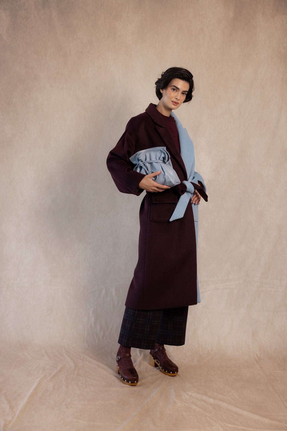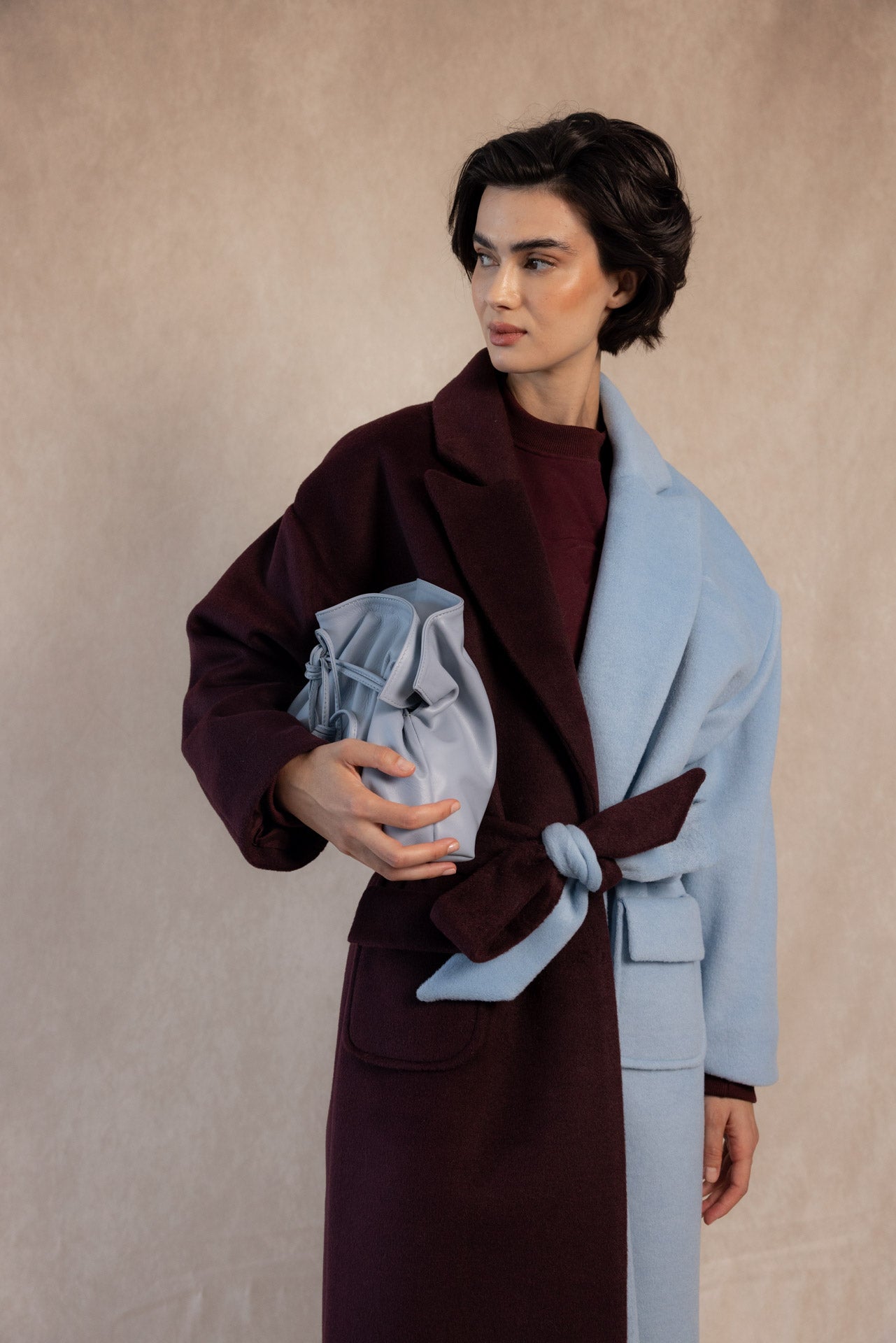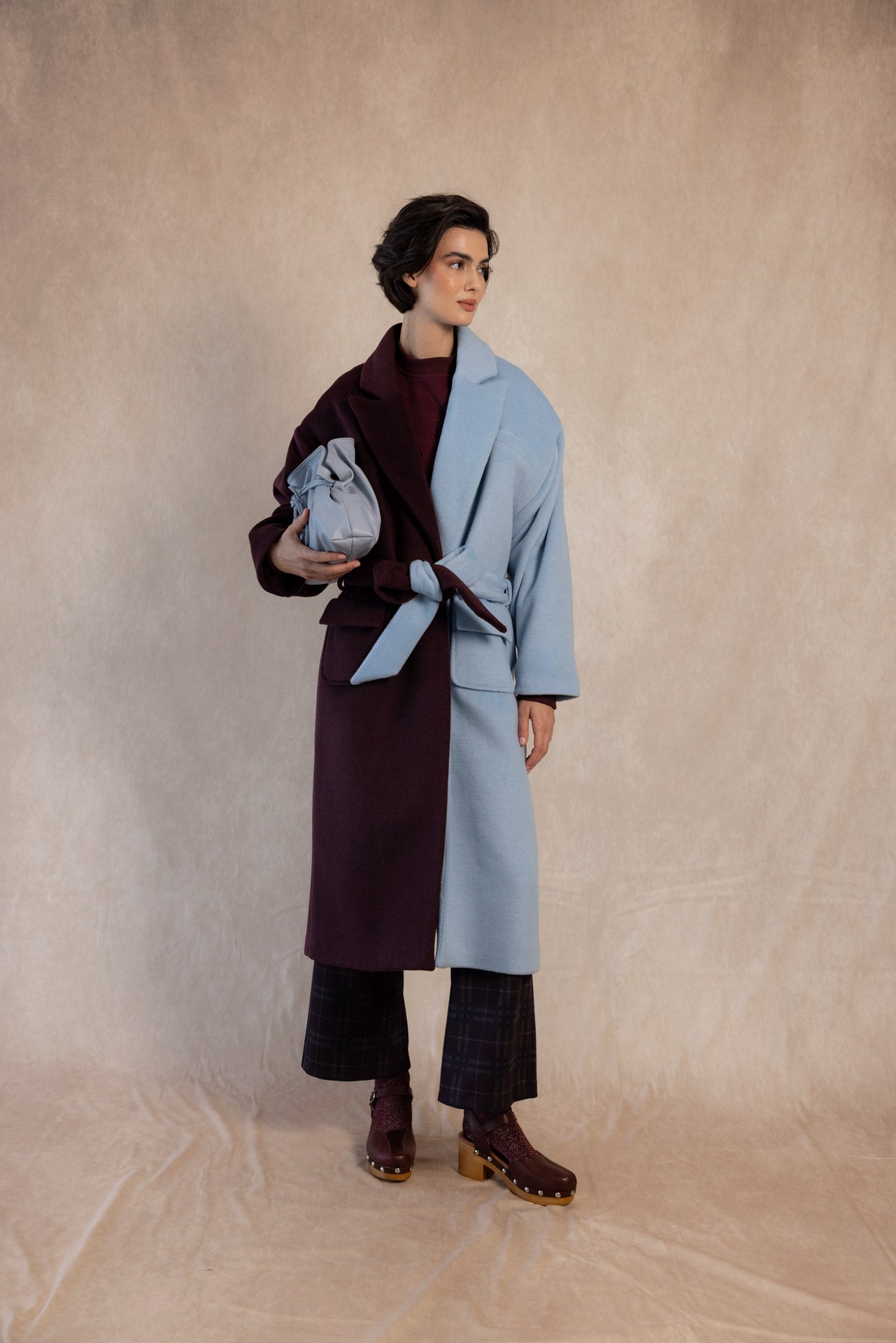El Abrigo Burguette de Coosy es una pieza de diseño único que combina modernidad, color y sofisticación. Su composición bicolor en burdeos y azul empolvado crea un contraste visual elegante y equilibrado, ideal para destacar con estilo esta temporada.