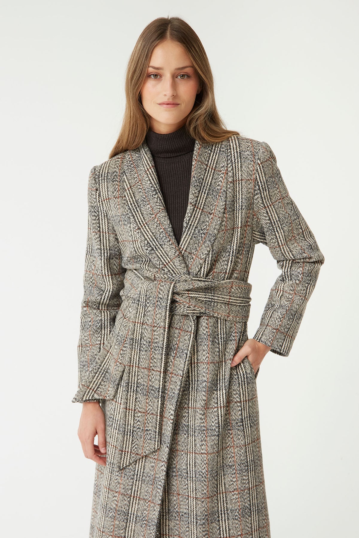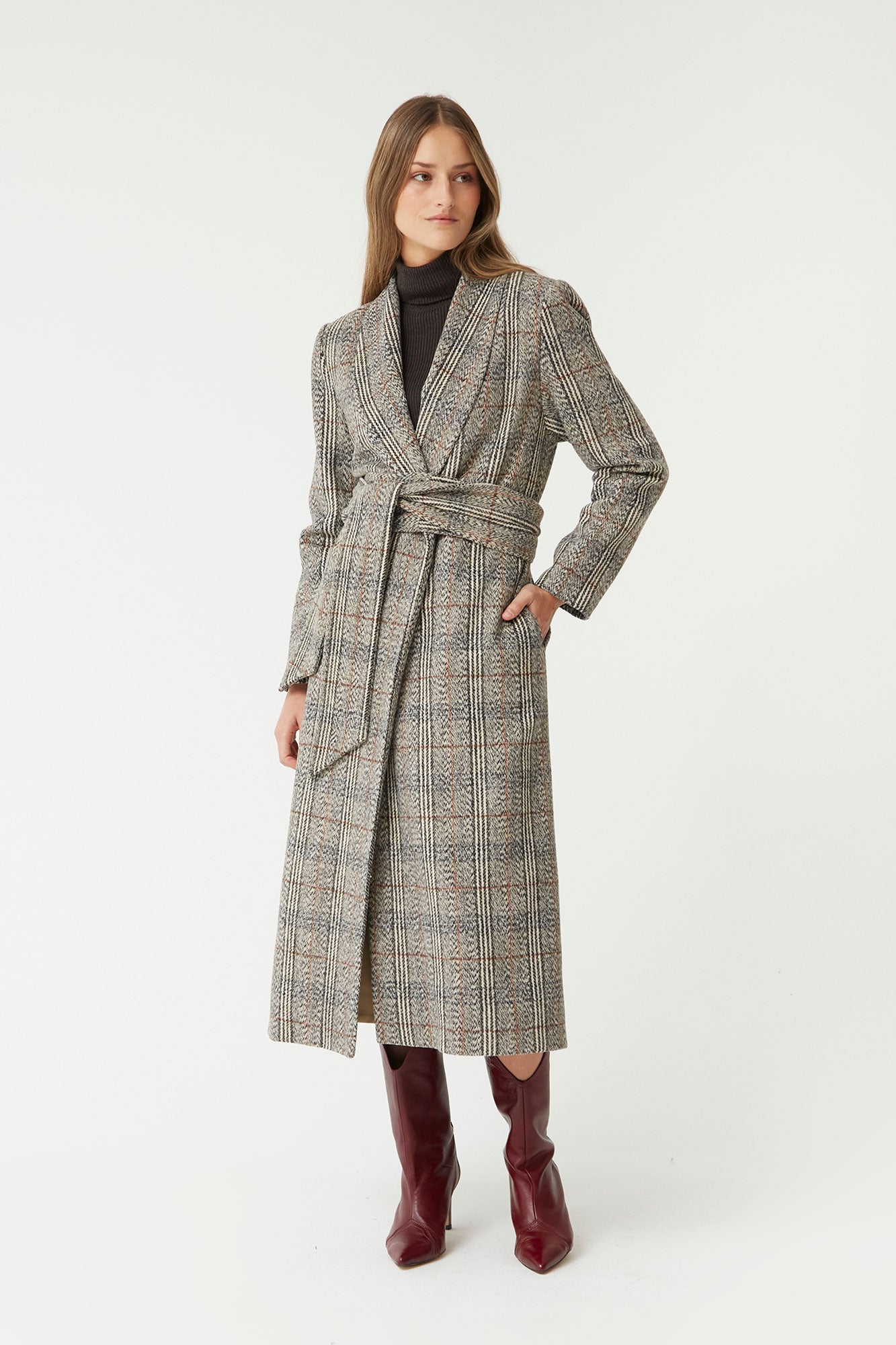 El abrigo largo de cuadros con cinturón de Coosy es la prenda perfecta para quienes buscan elegancia, calidez y estilo clásico con un toque contemporáneo. Su diseño envolvente tipo batín con cinturón del mismo tejido permite ajustar la cintura, realzando la silueta y aportando un aire sofisticado.