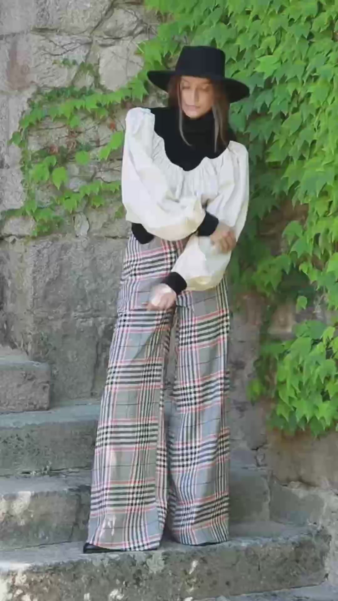 Confeccionada en un tejido de algodón en tono crudo, combina a la perfección con el detalle en terciopelo negro en cuello y puños, creando una silueta marcada y ultra femenina. Su diseño equilibrado entre lo artesanal y lo contemporáneo convierte esta camisa en una pieza icónica de la colección.