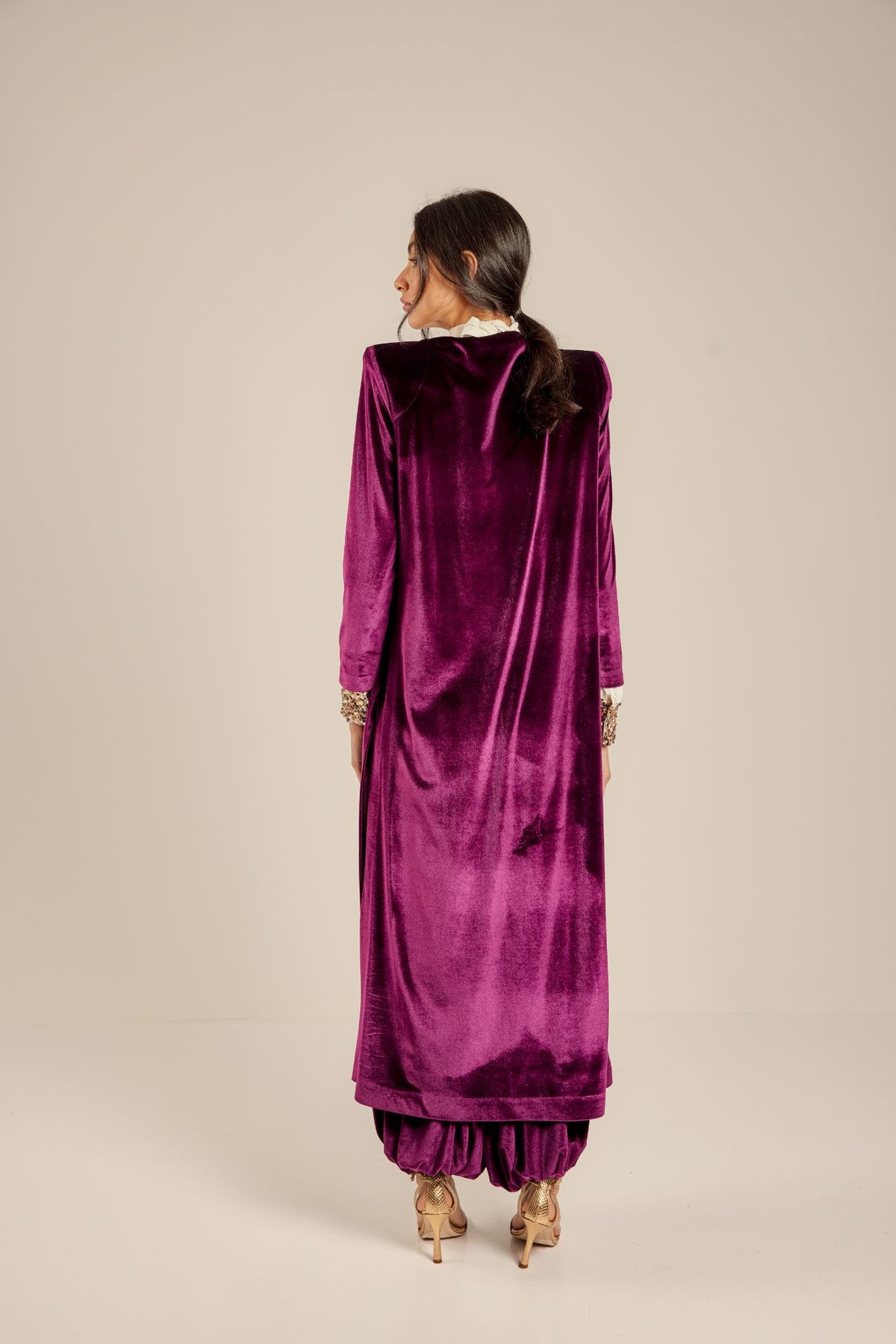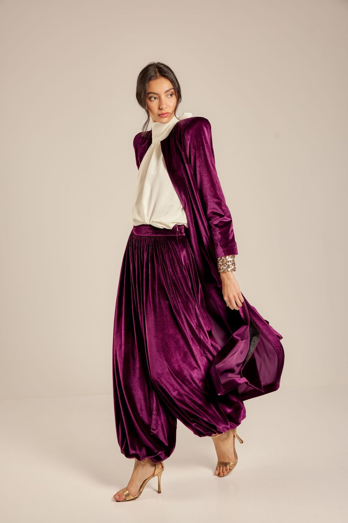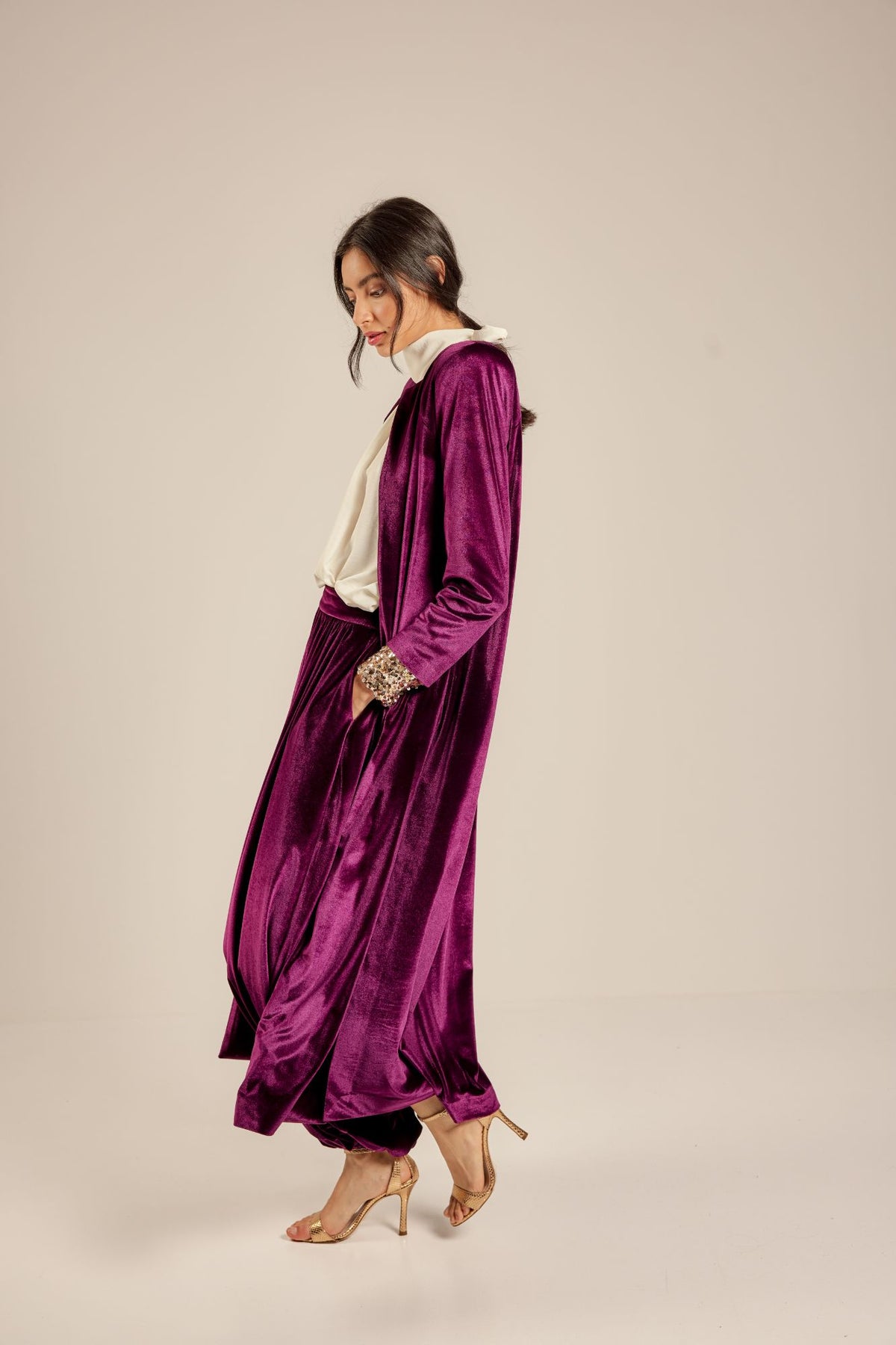 Descubre la casaca larga de terciopelo en color ciruela de Coosy, una prenda icónica diseñada para elevar cualquier look con un toque de glamour, movimiento y sofisticación. Confeccionada en un tejido de alta calidad, su caída fluida y su brillo sutil aportan una presencia única, perfecta para bodas, eventos especiales, invitadas o estilismos de noche.