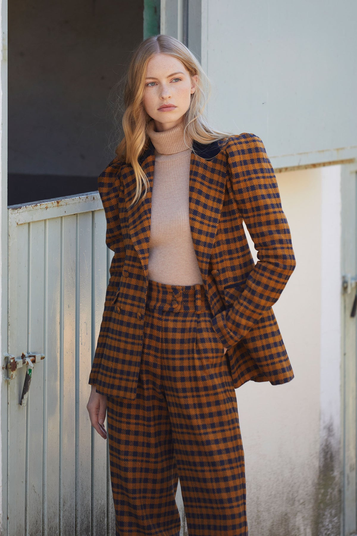 La Chaqueta Bassa Mostaza de Coosy es una prenda icónica que combina el estilo retro con un toque moderno y sofisticado. Su estampado de cuadros en tonos mostaza y azul marino la convierte en una pieza versátil y atemporal, perfecta para elevar cualquier look de otoño o invierno.