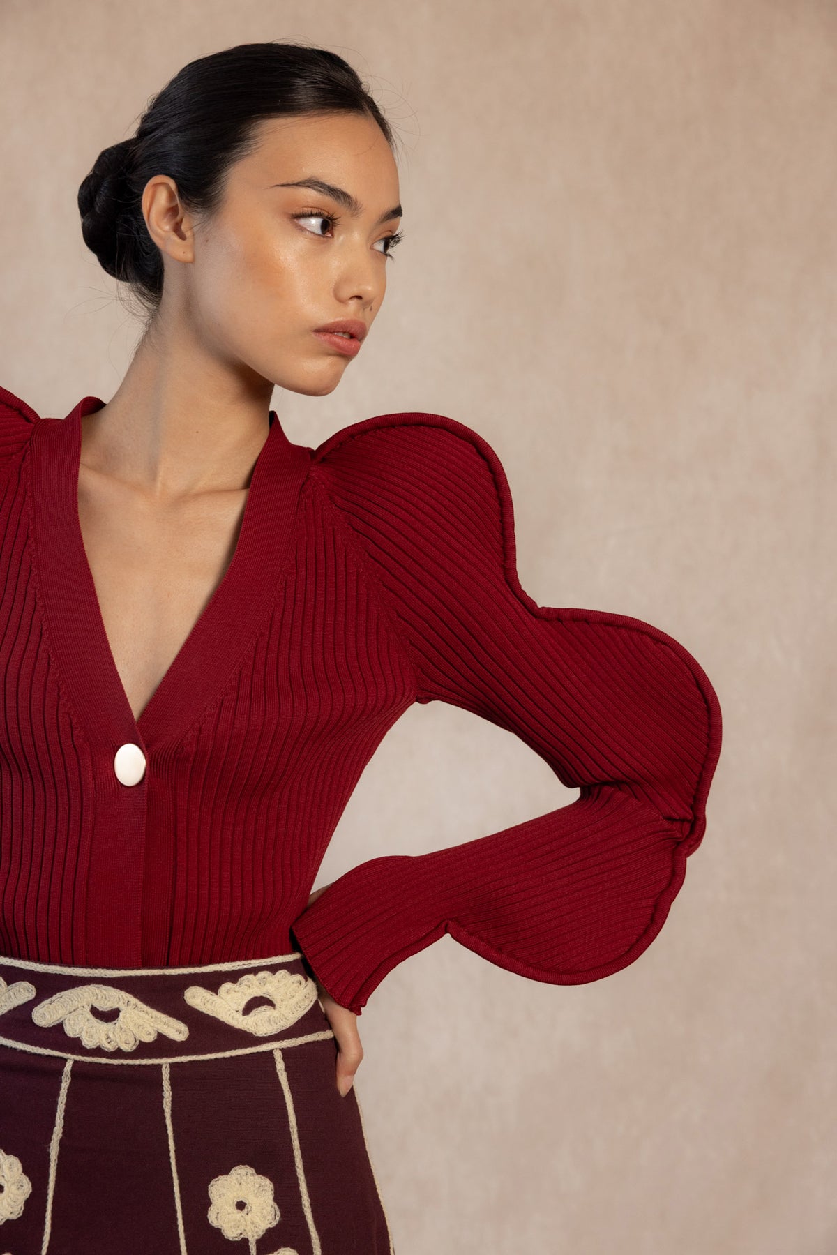 Atrévete con el diseño más rompedor de la temporada. La Chaqueta Nicoletta de Coosy es una pieza de punto estructurado que redefine el estilo con sus mangas esculturales y un ajuste entallado que realza la silueta. Su color burdeos profundo y su textura acanalada la convierten en una prenda sofisticada, ideal para looks elegantes con un toque vanguardista.