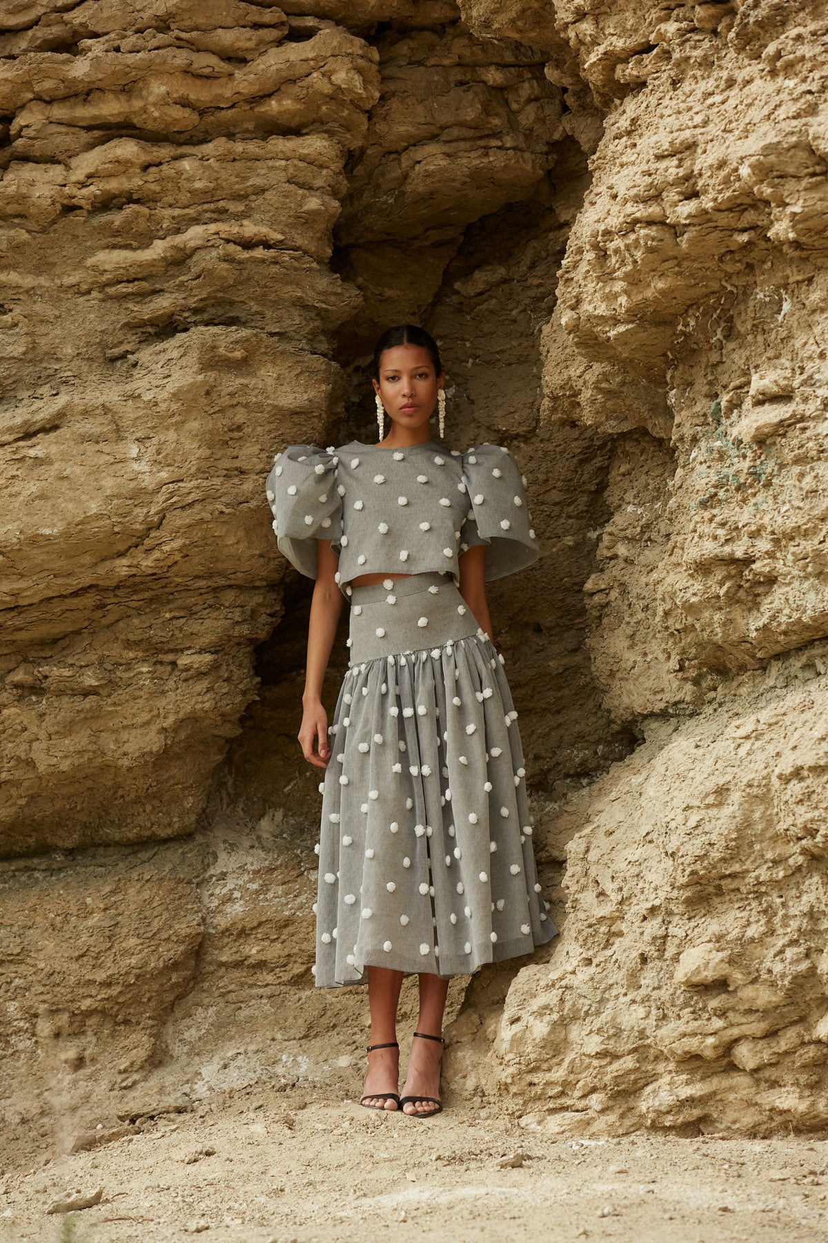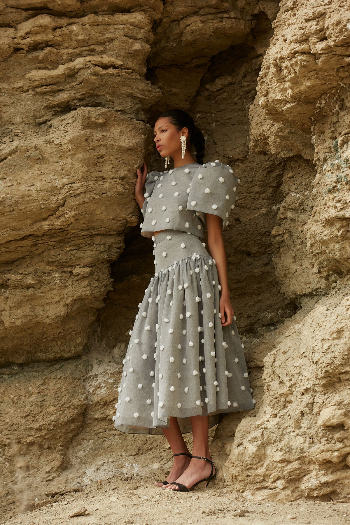 La falda Esme gris es una pieza de invitada que destaca por su diseño delicado y su estética sofisticada. Confeccionada en un tejido con textura de pequeños relieves, aporta dimensión y un acabado especial que eleva cualquier look.