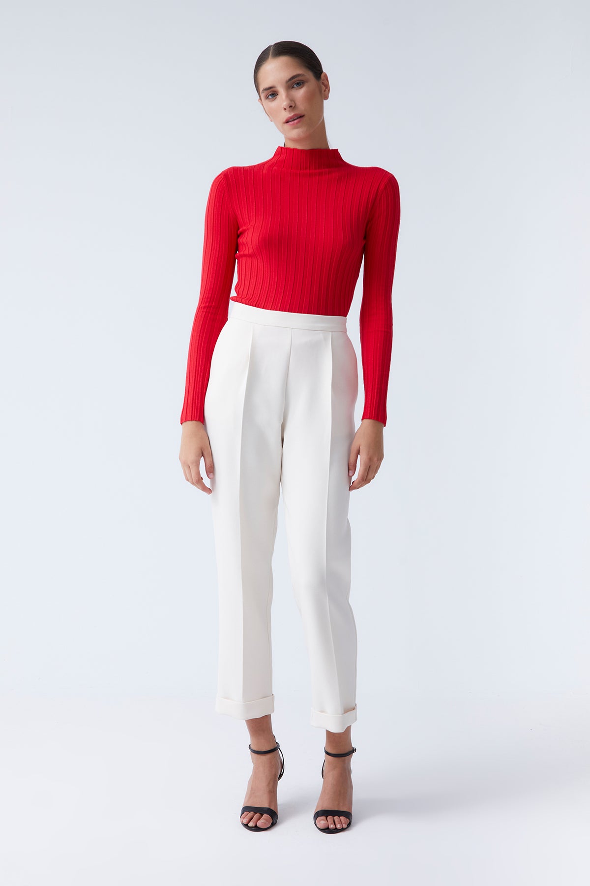 Descubre nuestro jersey de canalé rojo, una pieza imprescindible para tu armario esta temporada. Este jersey de cuello alto y manga larga está diseñado en un tejido suave y elástico que se ajusta perfectamente a tu silueta, brindando comodidad y estilo. Su vibrante color rojo es ideal para añadir un toque de sofisticación y energía a tus looks diarios o formales.