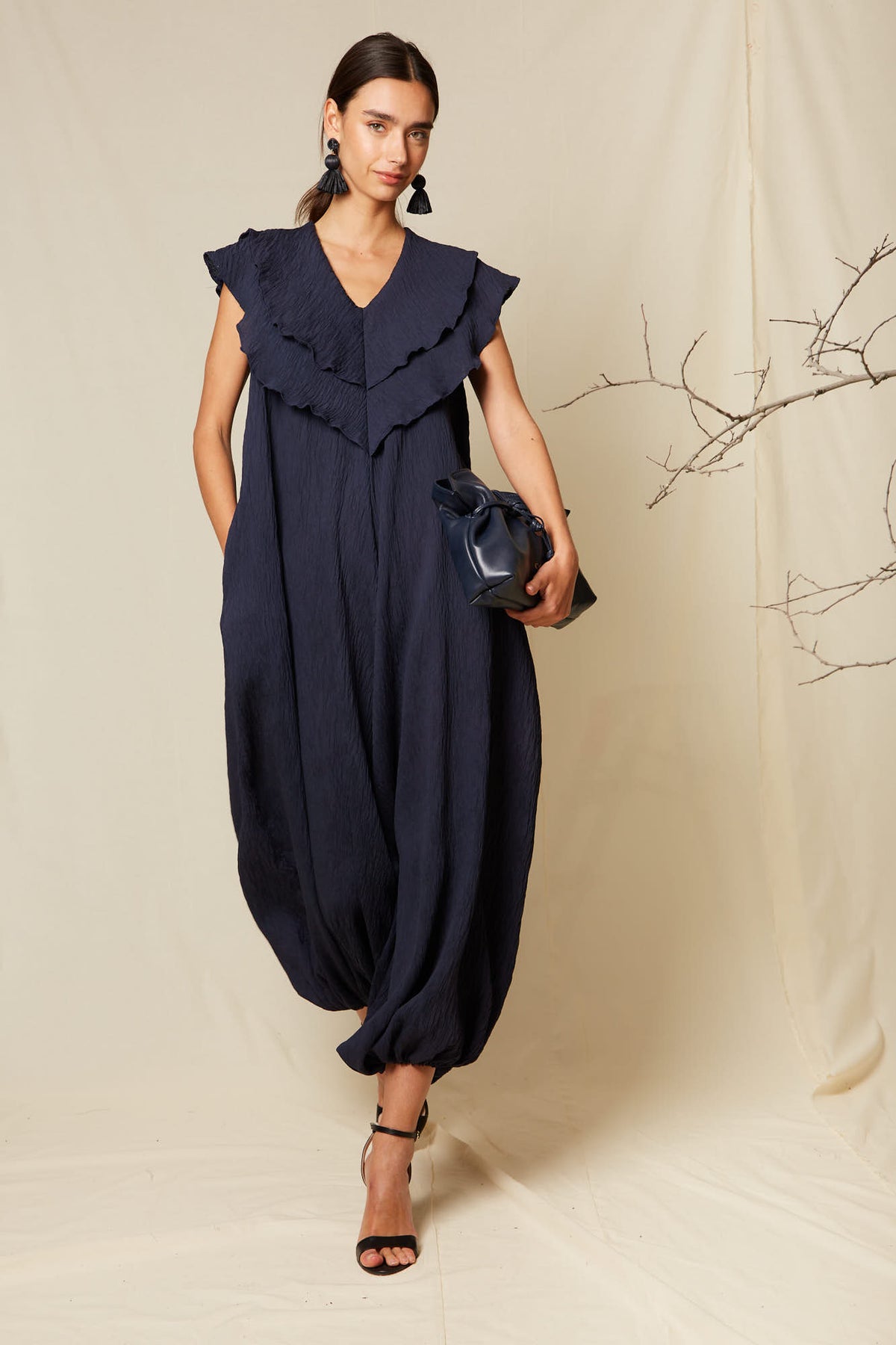 El mono Aleja de Coosy es una pieza clave de moda femenina diseñada para elevar cualquier look de invitada o evento especial con un equilibrio perfecto entre elegancia y comodidad. Confeccionado en un tejido ligero y con textura, este mono largo destaca por su caída fluida y su silueta amplia tipo oversize, que aporta movimiento y sofisticación a cada paso.