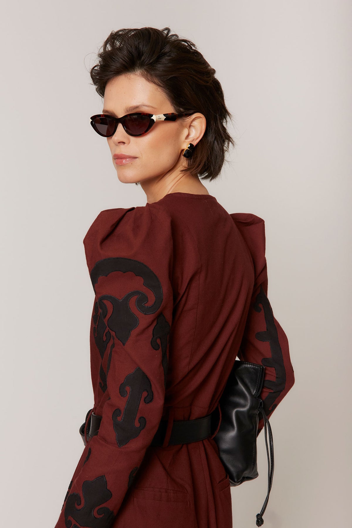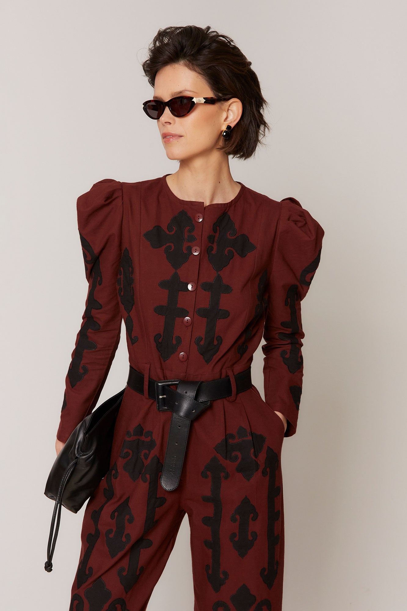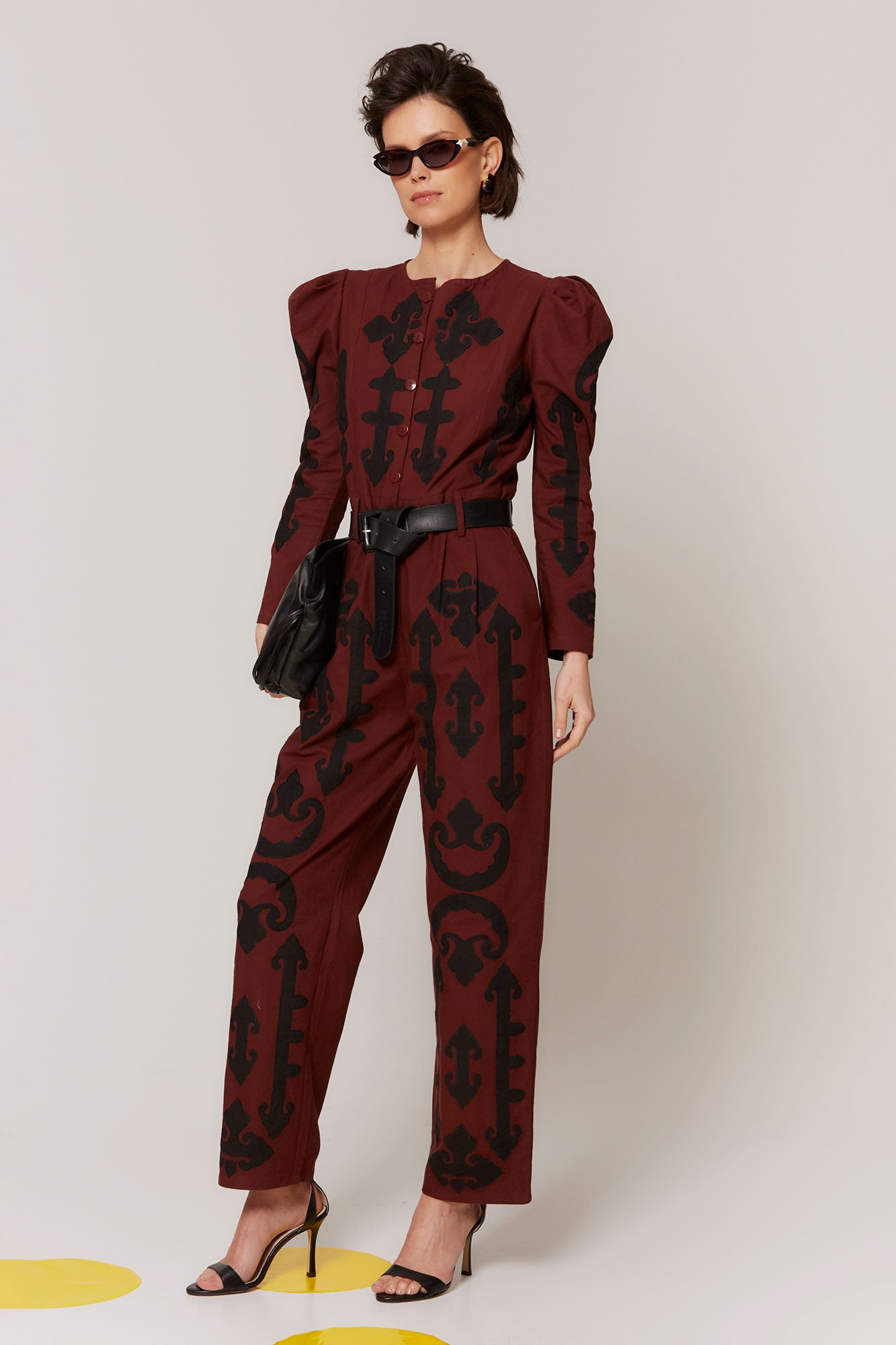 El mono granate estampado de Coosy es una pieza sofisticada que combina carácter, diseño y feminidad en una silueta elegante y contemporánea. Confeccionado en tejido ligero de caída fluida, este mono largo para invitada destaca por su estampado ornamental en contraste, que aporta personalidad y un aire artístico único.