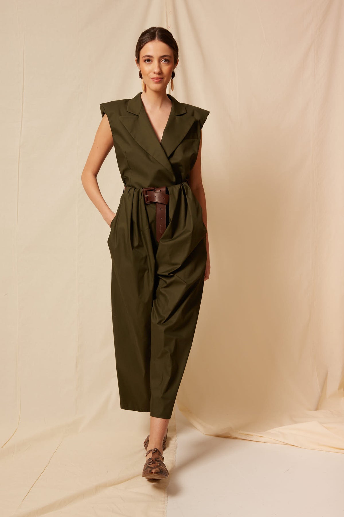 El pantalón Nikel verde de Coosy es una prenda clave para construir looks elegantes con un toque contemporáneo. Su corte recto y ligeramente amplio aporta comodidad y fluidez, mientras que la cintura alta con pliegues estiliza la figura y define la silueta. El detalle del cinturón añade un punto estructurado que eleva el conjunto y lo convierte en una opción versátil para distintas ocasiones.