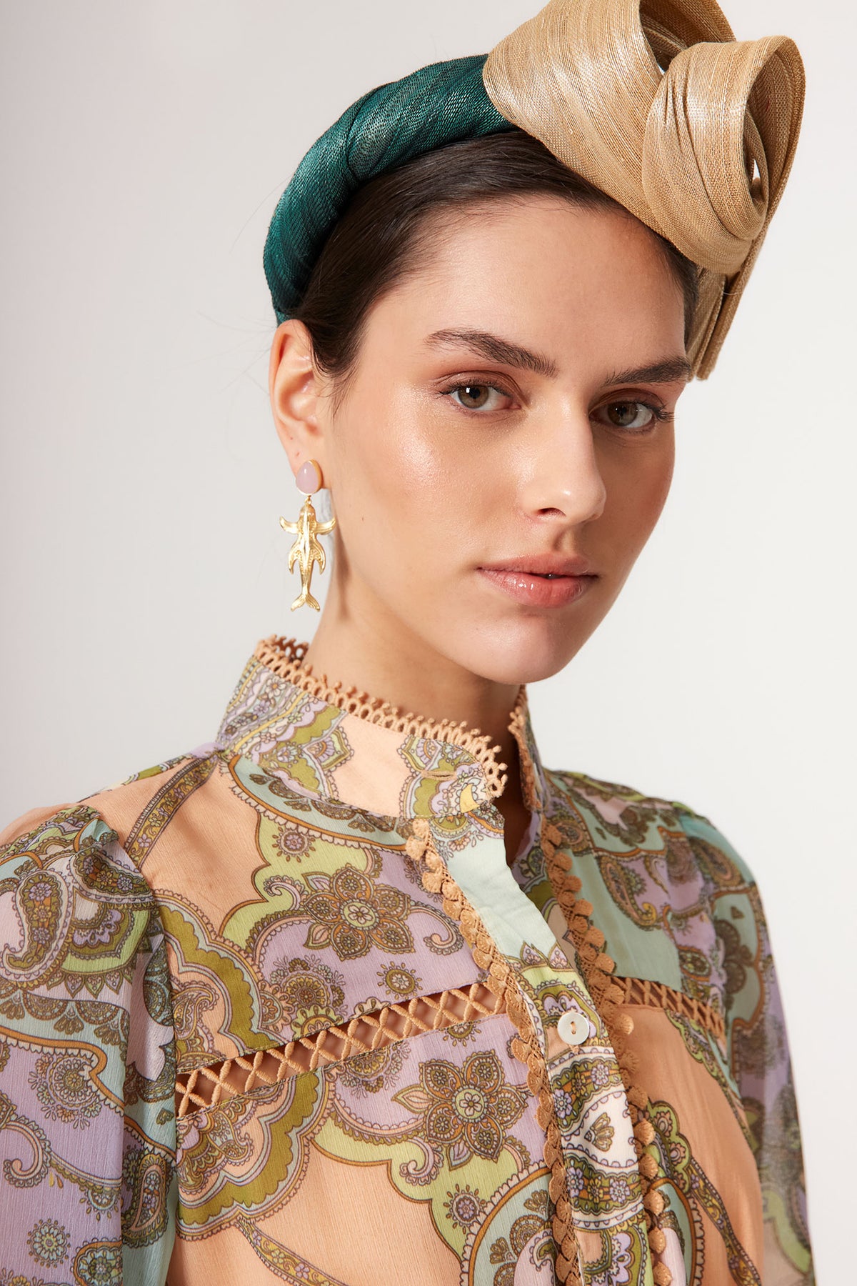 El vestido estampado Aladina salmón es perfecto para combinar con sandalias doradas o accesorios en tonos neutros, creando un look de invitada elegante, sofisticado y diferente. Una propuesta exclusiva de Coosy para mujeres que buscan vestidos especiales con carácter propio.