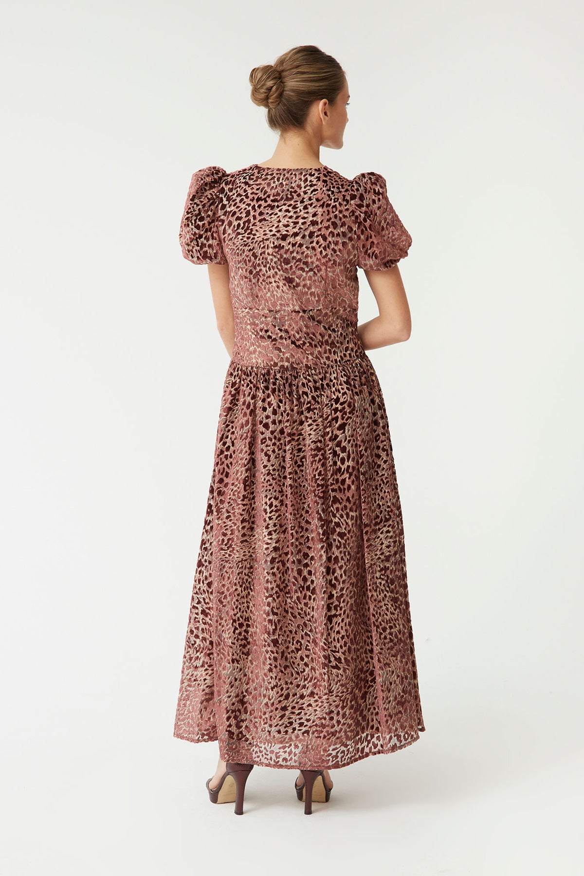 Su escote en pico y las mangas abullonadas realzan la figura y aportan un toque romántico, mientras que la falda midi con vuelo ligero ofrece movimiento y una caída impecable. Ideal para bodas de día, cenas o eventos de otoño e invierno, este vestido se convierte en un imprescindible para invitadas que buscan un look original y favorecedor.
