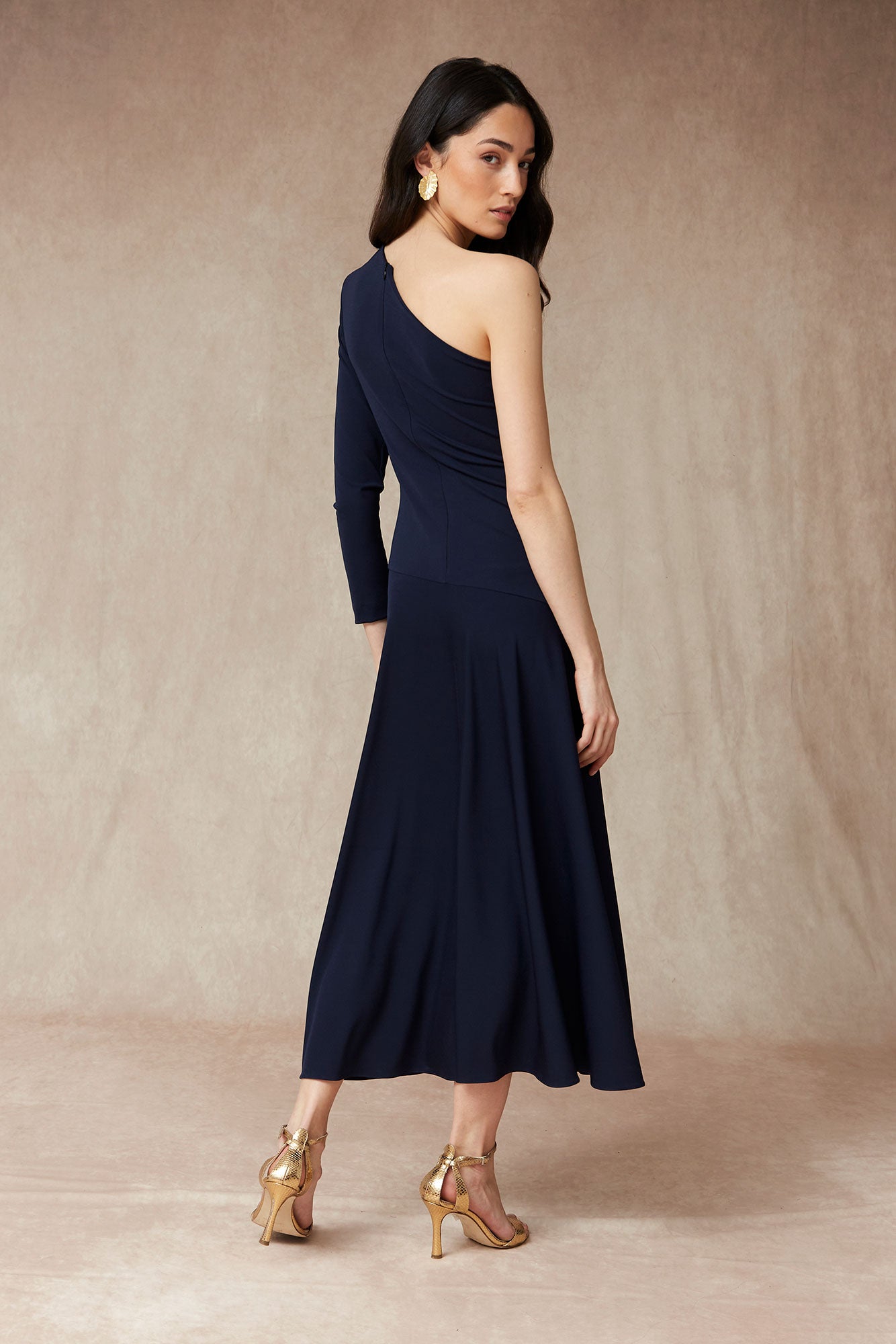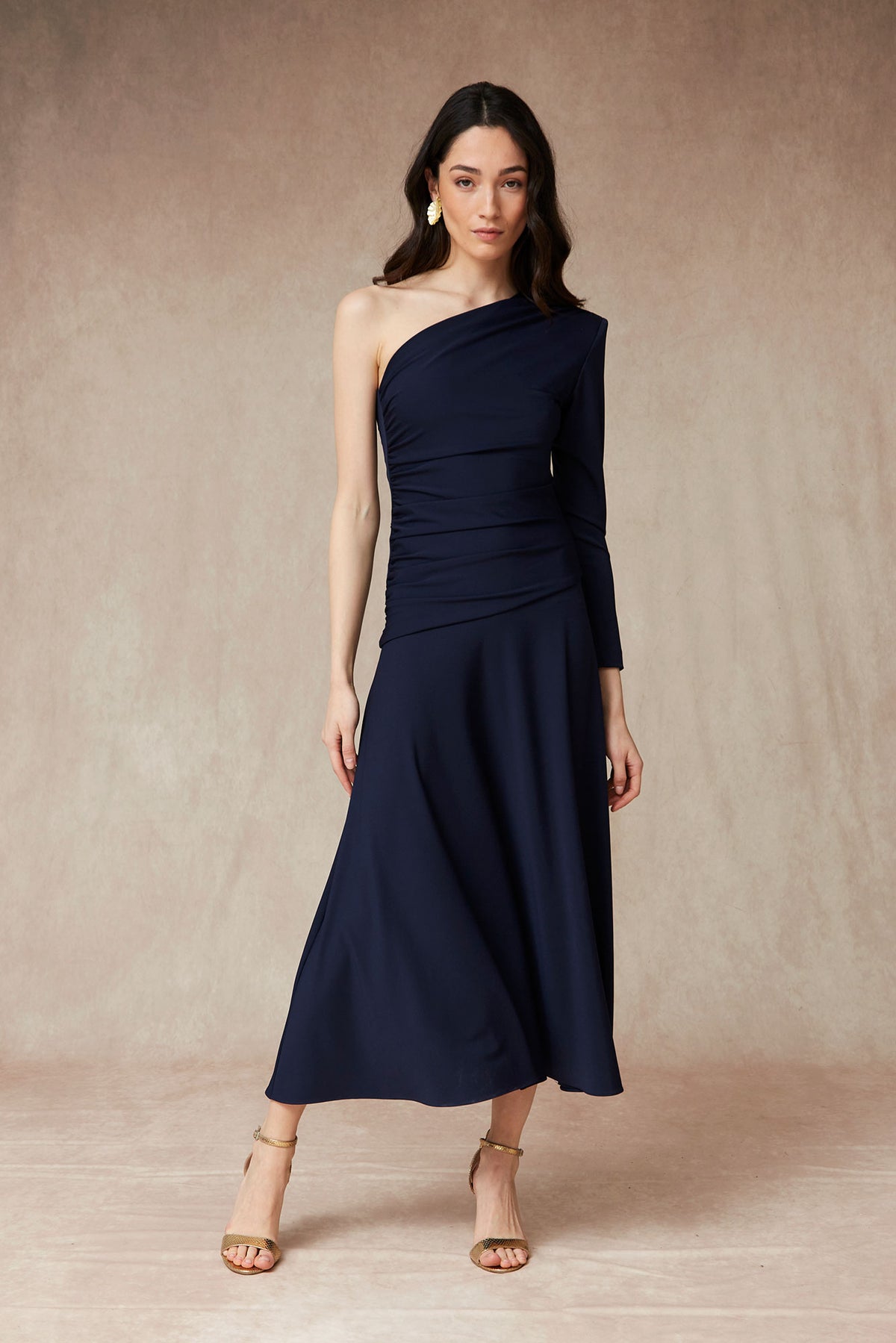 El Vestido Tarian es la definición de elegancia atemporal con un toque contemporáneo. Confeccionado en un favorecedor tono azul marino, este vestido largo destaca por su diseño asimétrico de un solo hombro, que estiliza la silueta y aporta un aire sofisticado y femenino.