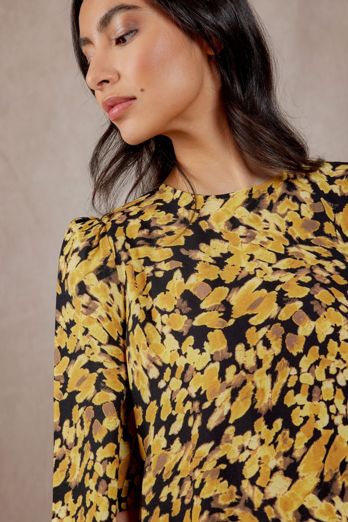El vestido Uriel de Coosy es la elección perfecta para quienes buscan un look sofisticado y con personalidad. Su estampado abstracto en tonos amarillos y negros aporta un aire moderno y vibrante, ideal para destacar en cualquier ocasión. Confeccionado en un tejido fluido y ligero, este diseño ofrece comodidad y movimiento, adaptándose con elegancia a la silueta femenina.