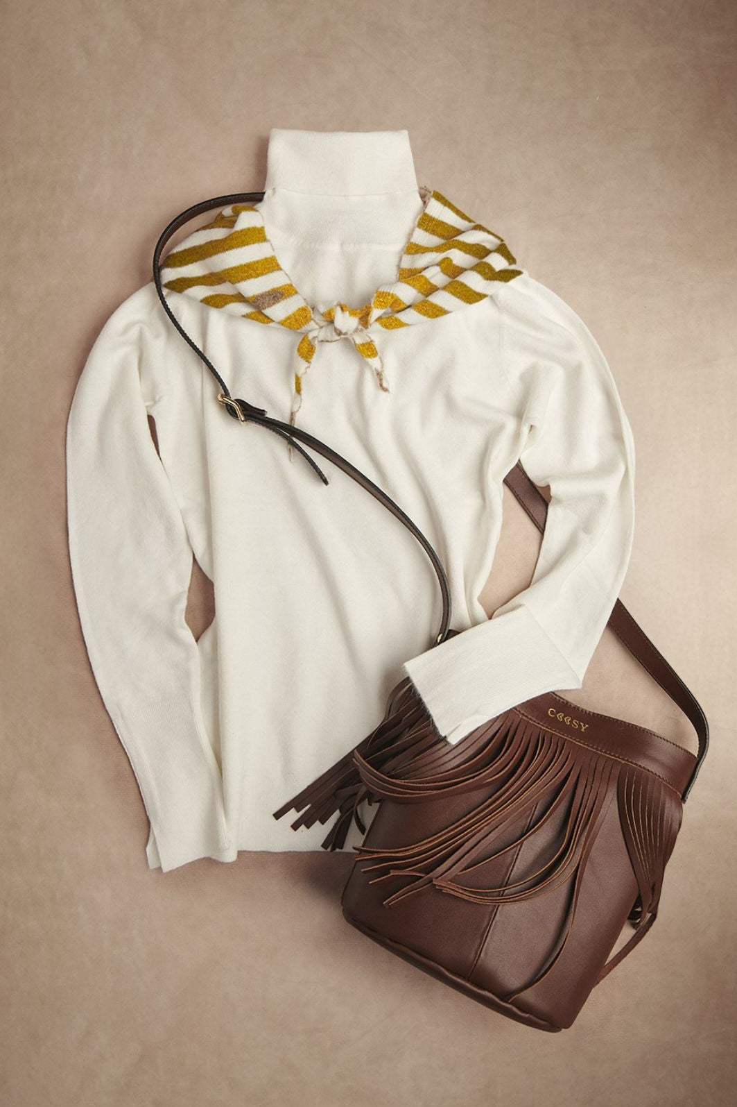 Bandana de punto estilo artesanal con diseño de franjas blancas y amarillas, perfecta para quienes buscan un accesorio versátil, moderno y funcional. Tejida con fibras suaves y cálidas, esta bandana ofrece comodidad durante todo el día y un acabado elegante que eleva cualquier look. Su patrón a rayas diagonales aporta un toque distintivo y atemporal, ideal para combinar con prendas básicas o outfits más sofisticados.