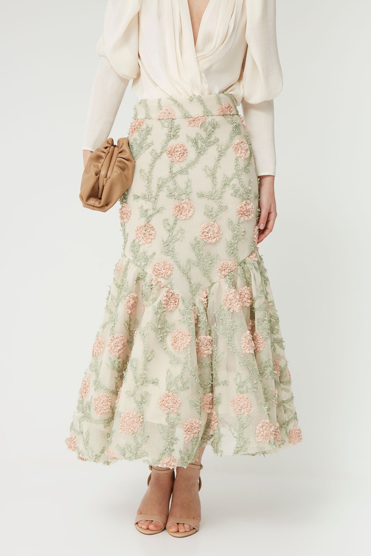 A saia Odise é uma peça romântica e sofisticada que confere movimento e delicadeza a qualquer look. Confeccionada num tecido leve com bordados florais, destaca-se pelo seu design cuidado e pelo seu drapeado fluido, perfeito para conjuntos femininos e especiais.