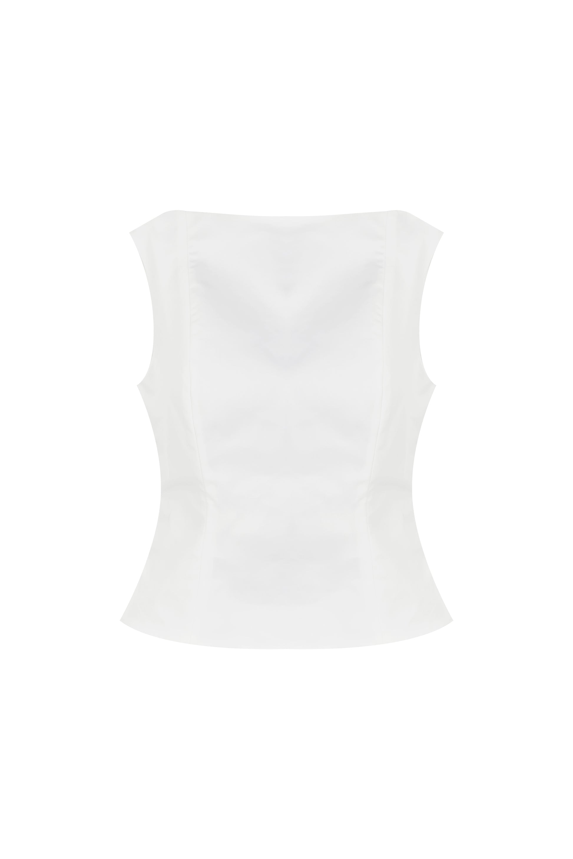 Este top branco de alças largas é uma peça essencial que combina minimalismo, sofisticação e versatilidade. Confeccionada num tecido estruturado com um subtil acabamento texturado, tem um toque refinado e intemporal que elevará qualquer visual.